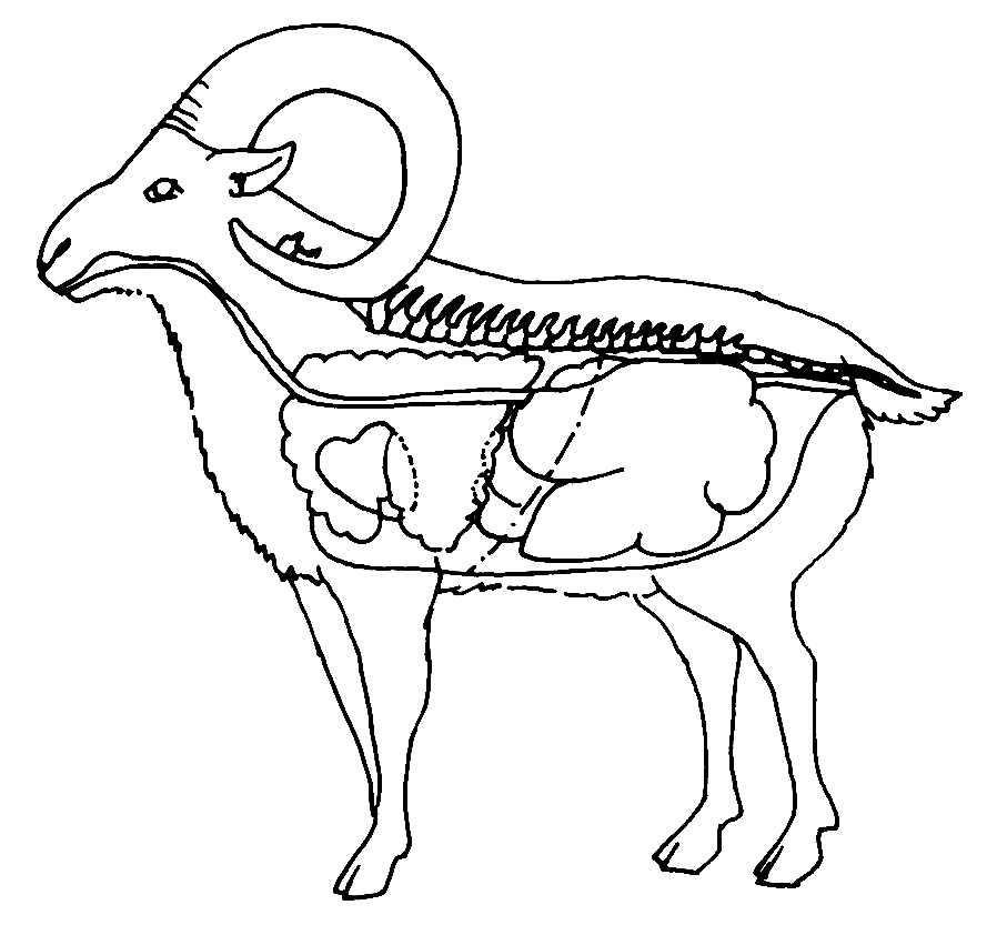 A panza di a mufra hè larga assai (25 o 30 l) è piglia a maiò parte di u corpu à manca. Quì, l’altre stacche di u stomacu ùn cumpariscenu micca chì sò piatte da a panza.