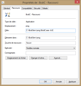 Pour obtenir immédiatement la fenêtre d'authentification, il faut paramétrer l'icône BCDI généralement accessible depuis le bureau de l'ordinateur.