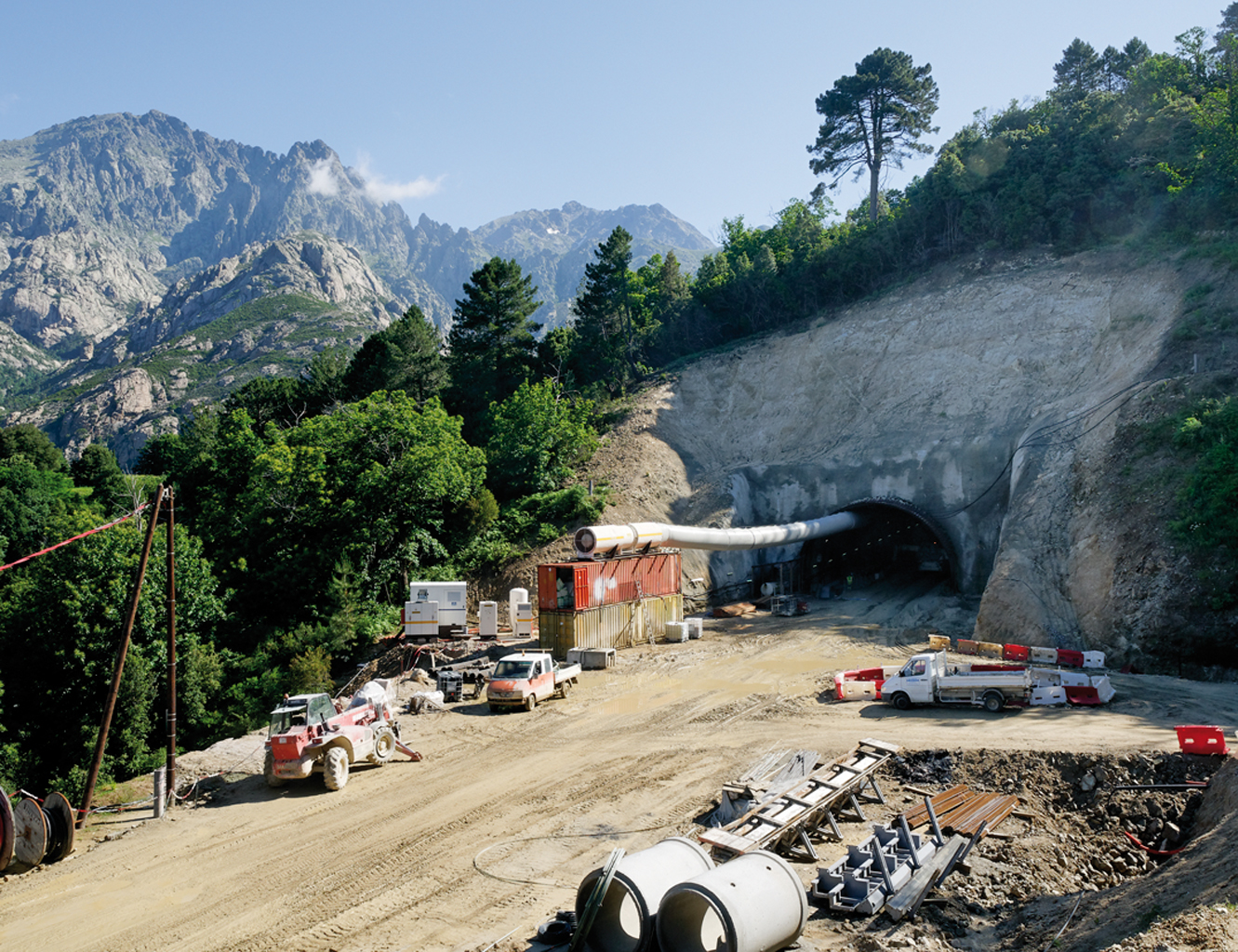 Percement du tunnel routier.