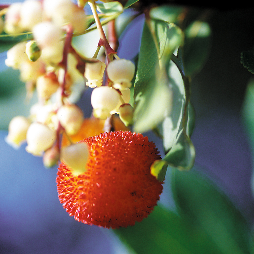 Fleurs et arbouse (Arbutus unedo).