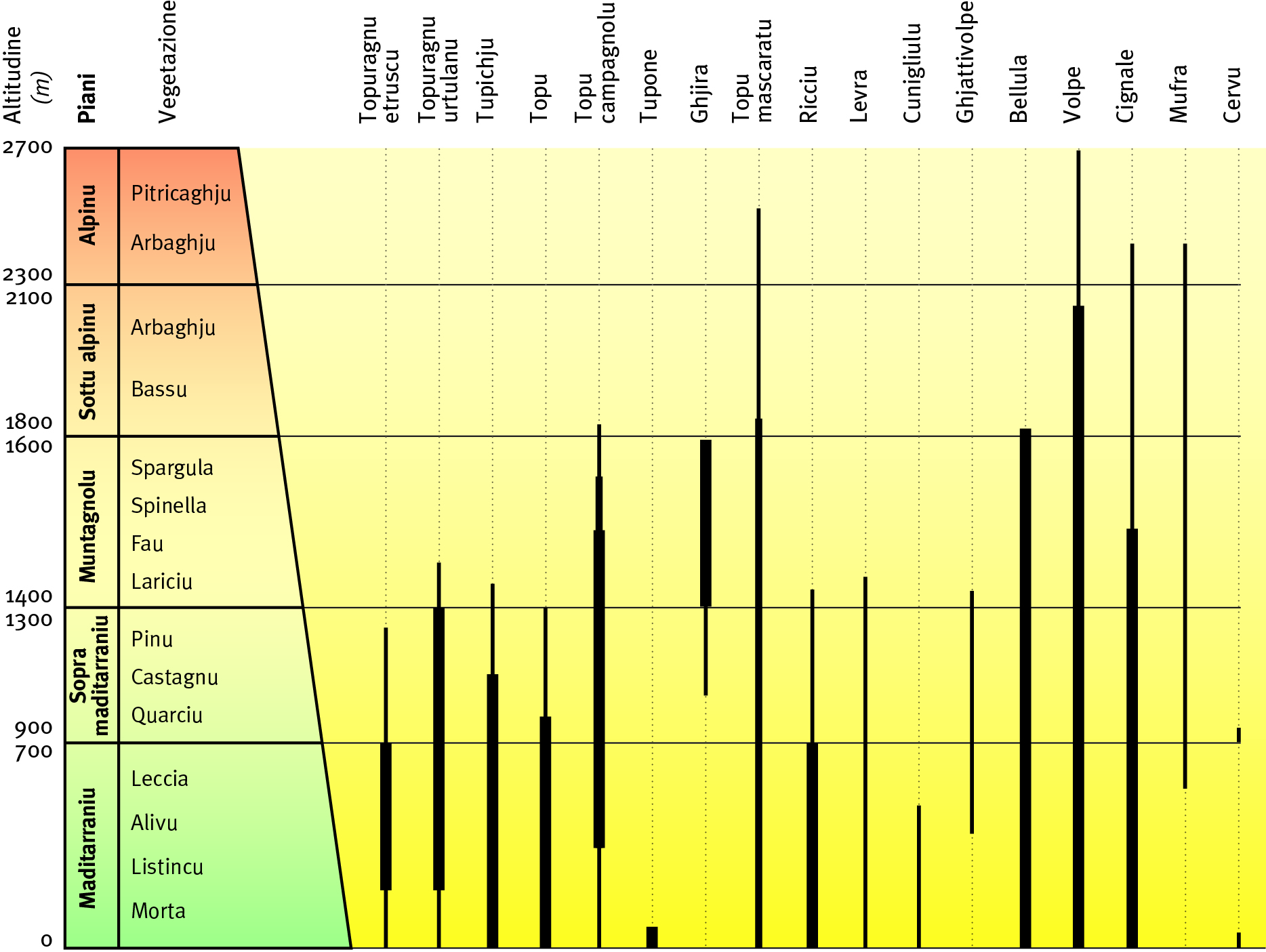 Mammiferi salvatichi di Corsica : sparghjera in altitudine è densità.