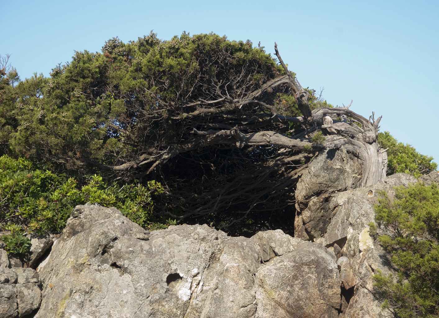 Genévrier en « drapeau ».